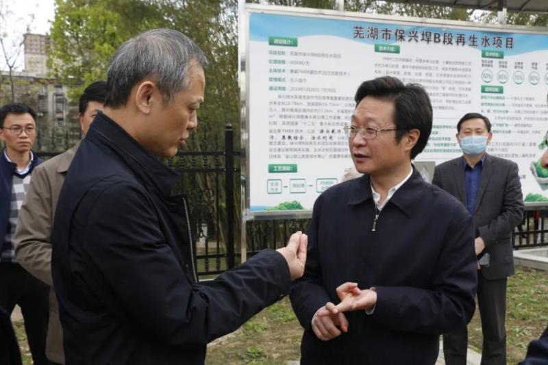 在镜湖区保兴垾黑臭水体整治现场,罗宏一行查看分散式污水处理厂站和再生水项目,详细了解主渠水体指标。罗宏对芜湖在黑臭水体整治中突出控源截污、围绕管网修复、因地制宜处理给予肯定。